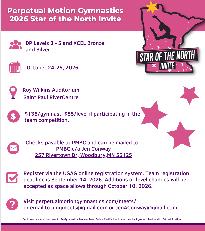 Level changes or additional gymnasts for registered XCEL / DP teams will be accommodated as space allows.